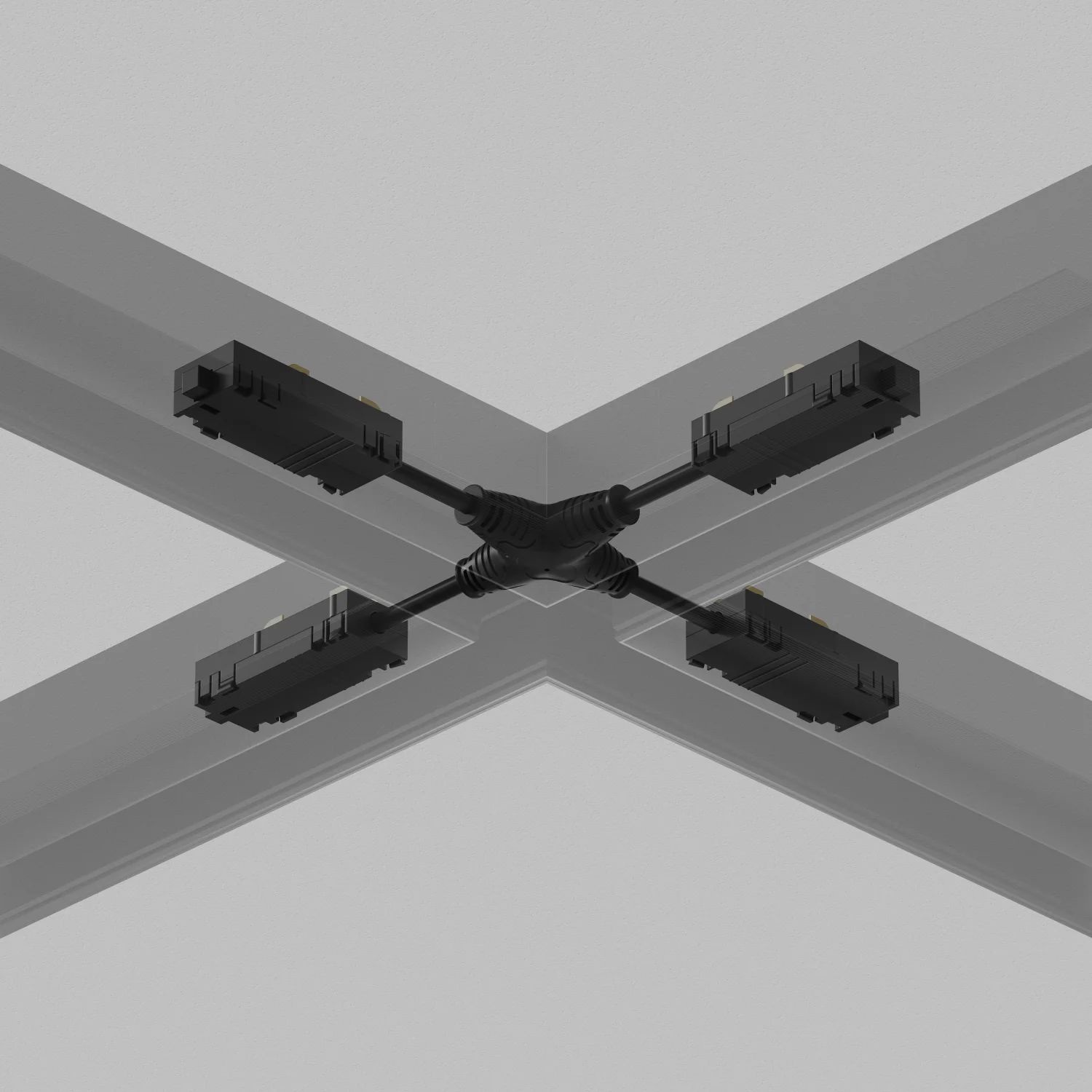 Гибкий X-образный, электрический коннектор трека SMART, черный. Позволяет передать питание между четырьмя треками SMART. Используется cсовместно с X-образным механическим соединителем TR2114-BK.