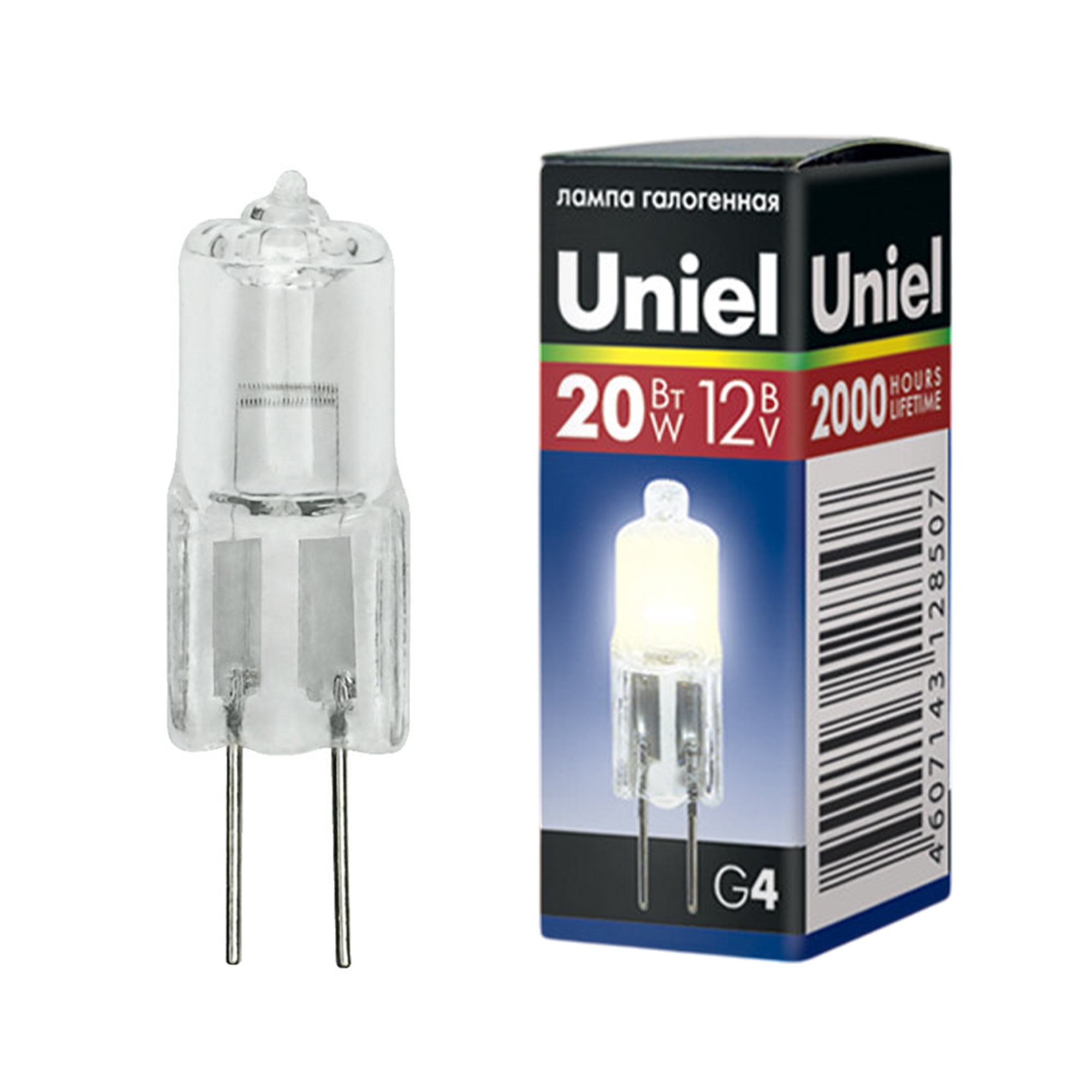Лампа галогенная Uniel JC-12/20/G4 CL обладает цоколем G4 и мощностью в 20 вт., имеет прозрачную колбу