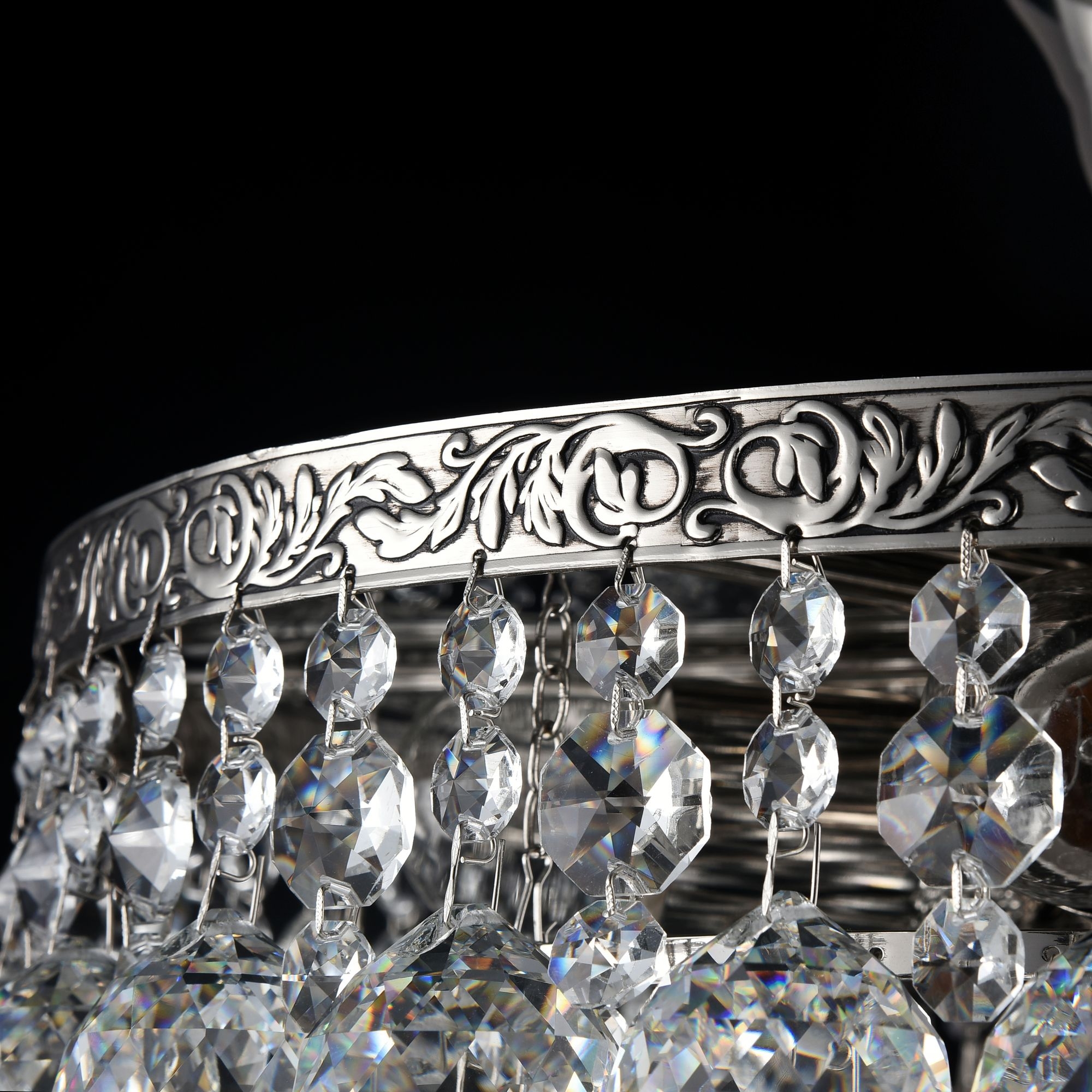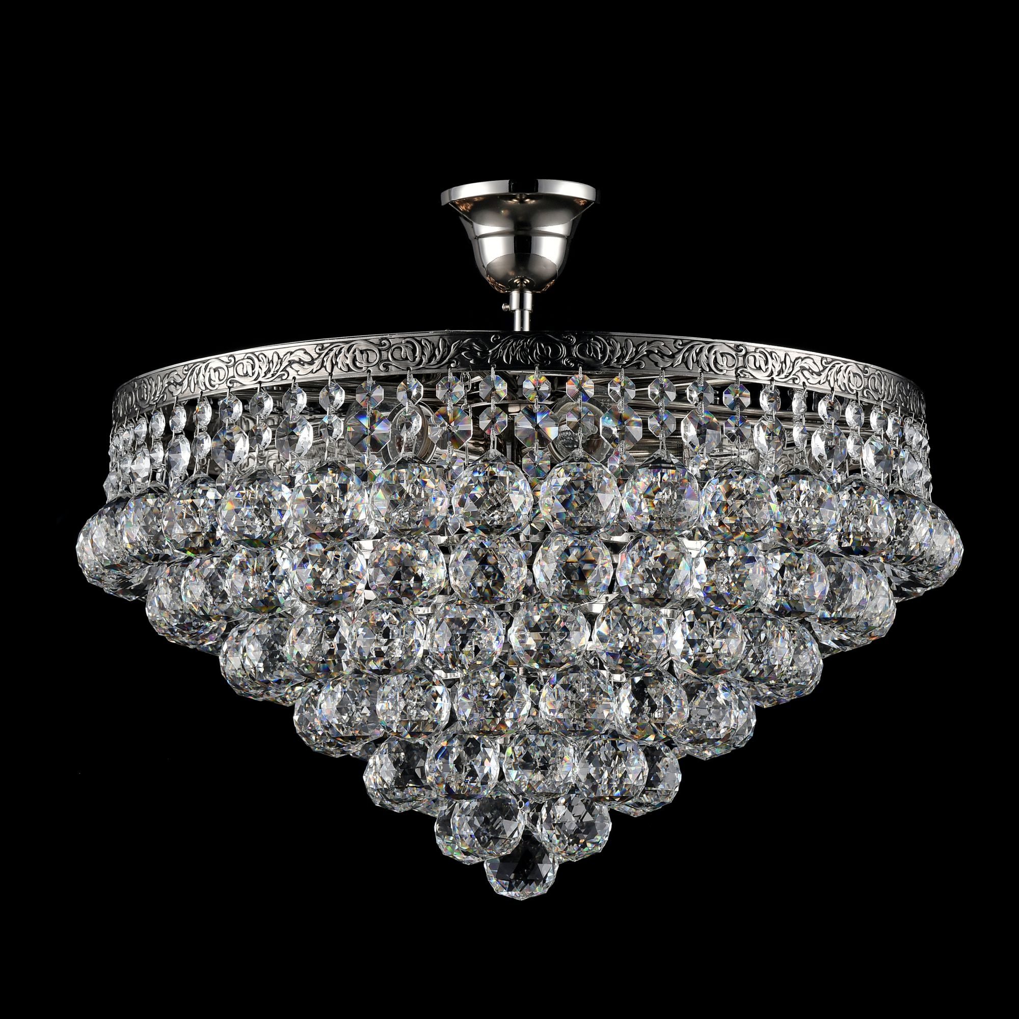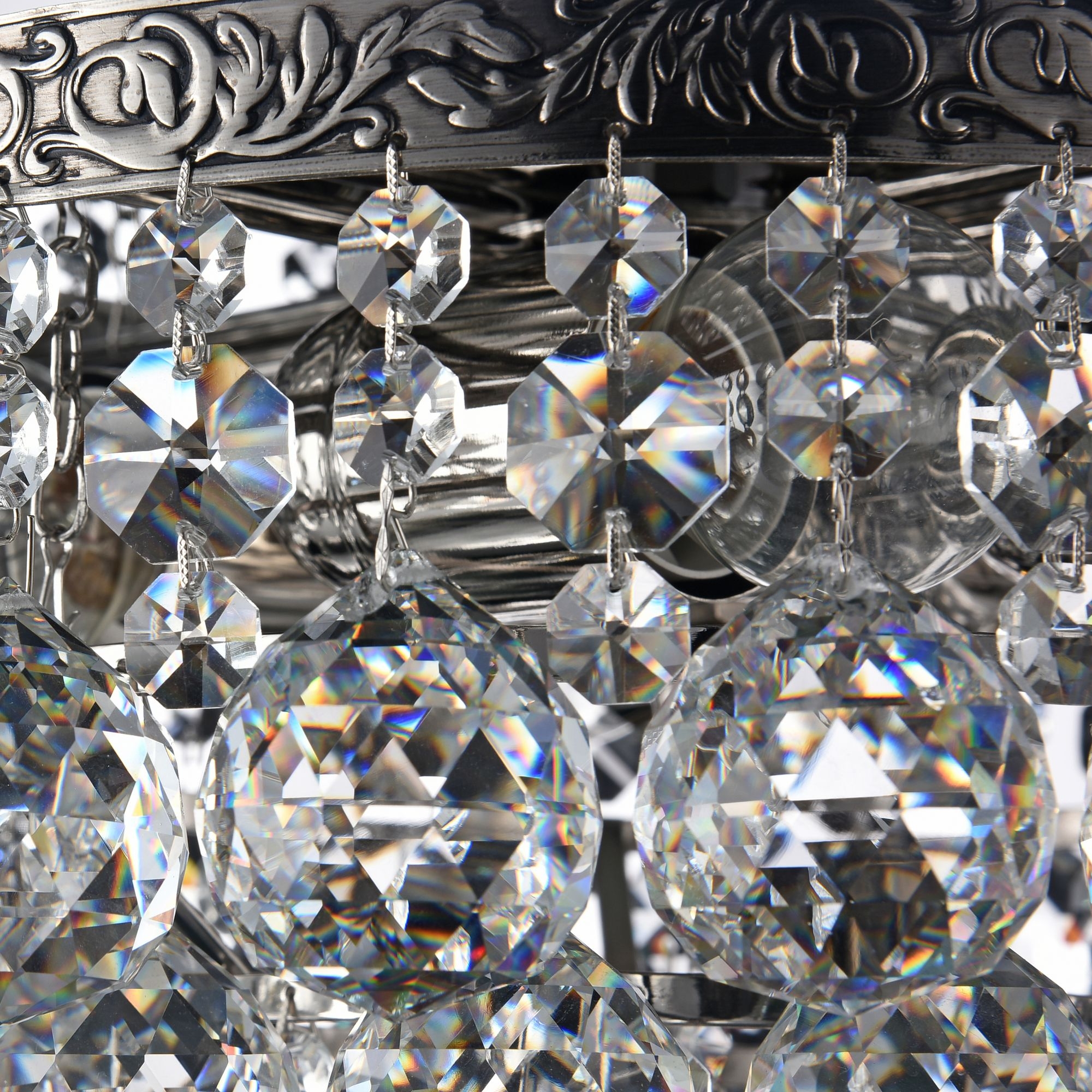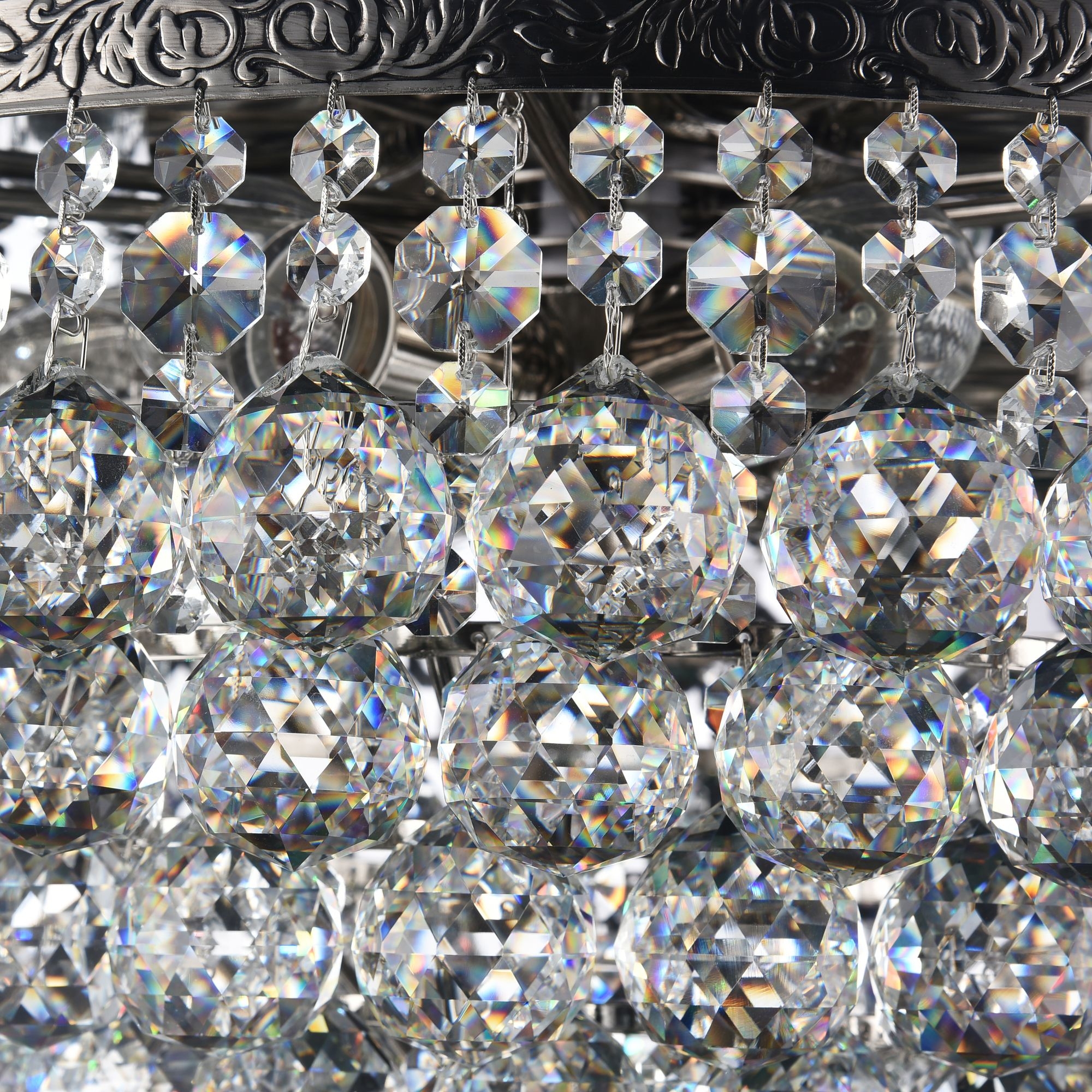 Люстра изготовлена из крупного хрусталя. Смотрится изысканно, освещает отлично. Качеством удовлетворен.