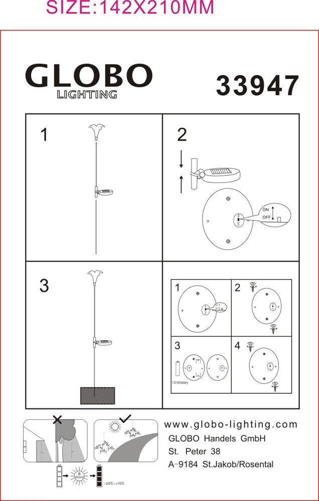 Интернет-магазин светильников СветГуру предлагает вашему вниманию уличный наземный светильник 33947 серии Solar Al от фабрики Globo (Австрия). Наземные уличные светильники в современном стиле создают тёплую, простую и уютную обстановку, отлично впишутся в ландшафтный дизайн загородного дома. Металлическое основание серого цвета превосходно сочетается с плафоном из стекла. Наземный уличный светильник Solar Al 33947 с максимальной мощностью 1W осветит пространство достаточно равномерно, площадью до 1 кв.м.