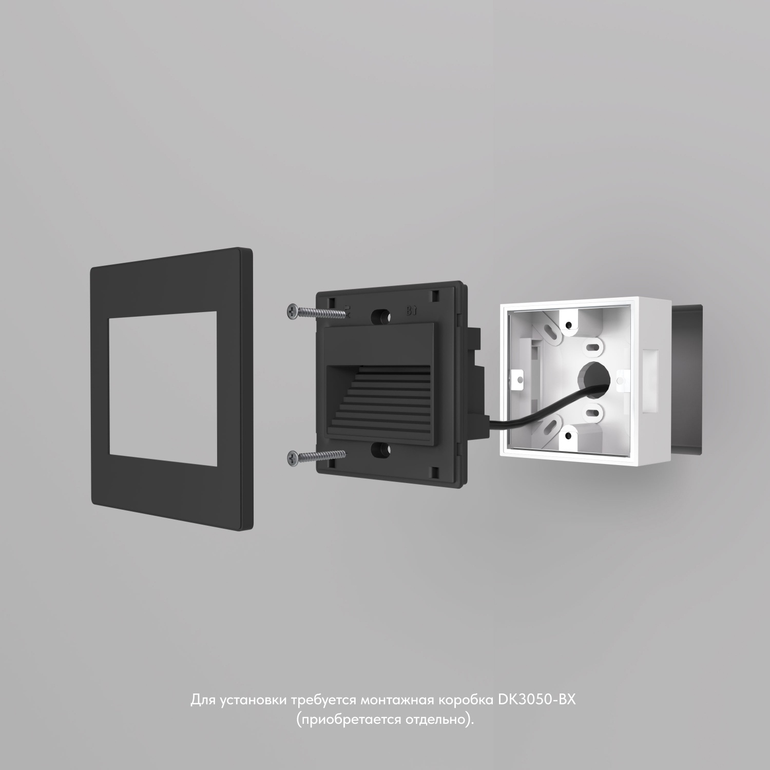 Светильники выполнены из современного термопластика. Характерные особенности: прочность и полное отсутствие коррозии. Легко моется водой. Для установки требуется обычный подрозетник или монтажная коробка DK3050-BX (приобретается отдельно).