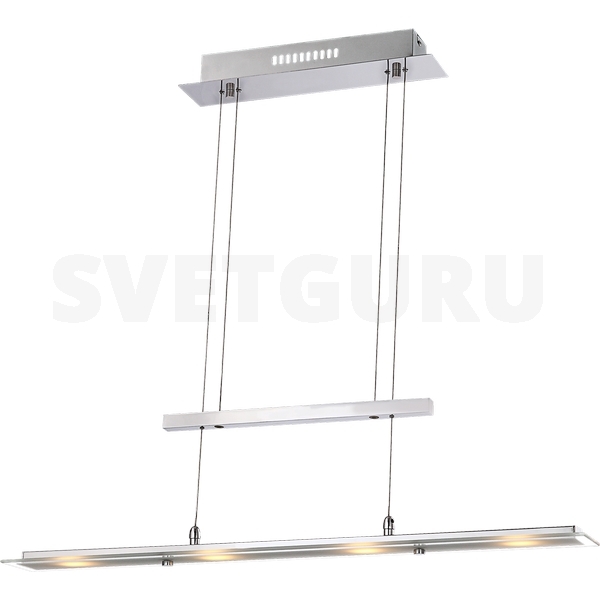 У нас Вы можете купить подвесной светильник 68104-4H серии Janick от фабрики Globo (Австрия). Подвесные светильники в стиле модерн выглядят дорого и солидно, гармонично впишутся в интерьер кухни. Металлическое основание цвета хром отлично сочетается с плафоном из стекла. Подвесной светильник Janick 68104-4H с максимальной мощностью 12W осветит комнату, площадью 2 кв.м.