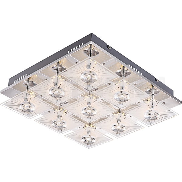СветГуру - интернет магазин освещения, в котором вы можете купить потолочный светильник 41691-9 серии Santi от австрийской фабрики Globo. Накладные потолочные светильники в современном стиле создают тёплую, простую и уютную обстановку, отлично впишутся в дизайн вашей кухни. Основание светильника из металла цвета хром отлично сочетается с плафоном из стекла. Потолочный светильник накладной прямоугольный Santi 41691-9 с максимальной мощностью 45W осветит пространство достаточно равномерно, площадью до 9 кв.м.