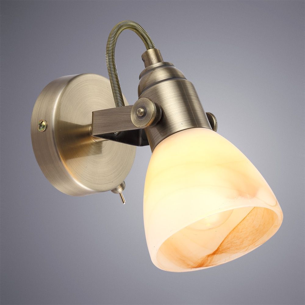Используемые материалы арматуры - металл гальванизированный, плафона - стекло. Цвет базы - античная бронза, плафон - бежевый. Диаметр потолочной чашки 8 см.
