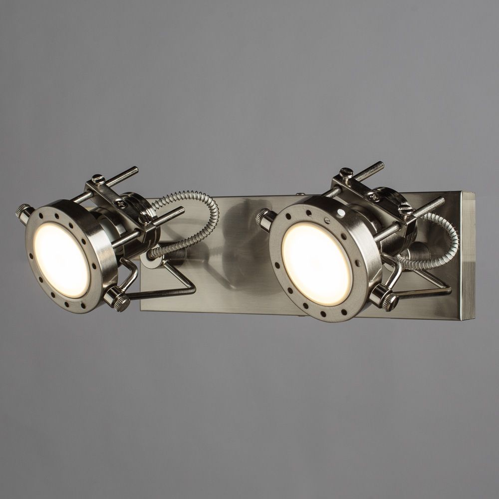 Незаменимым инструментом для создания локального освещения и выделения в помещении зон являются споты. Эти приборы помогают сосредоточить внимание на конкретной детали интерьера и отделить участок пространства. Для установки в кафе, кухне, прихожей, спальне или на экспозиции мы рекомендуем использовать спот Costruttore A4300AP-2SS, декор которого сделан в стиле модерн. Изделие создано итальянским брендом Artelamp, чьи мастера изготавливают только качественную продукцию. Конструкция состоит из корпуса, сделанного из металла. Благодаря тщательному отбору материалов изготовления и вниманию к каждой детали, светильник сможет исправно прослужить многие годы. Производительности устройства достаточно для освещения территории площадью в 7 кв. м, если использовать лампочки с цоколем GU10 мощностью в 50 Вт каждая. Доступная цена 2400 рублей и быстрая доставка – только в СветГуру.