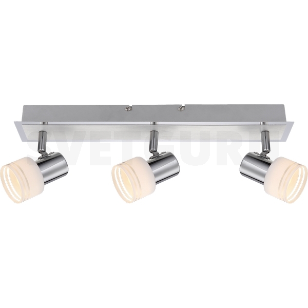 Интернет-магазин светильников СветГуру предлагает вашему вниманию спот 56032-3 серии Livio от фабрики Globo (Австрия). Споты в стиле модерн достаточно популярны, идеально подойдут для оформления интерьера кафе или ресторана. Металлическое глянцевое основание цвета хром превосходно сочетается с плафоном из стекла. Спот Livio 56032-3 с максимальной мощностью 15W осветит комнату, площадью 3 кв.м.