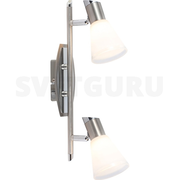 У нас Вы можете приобрести спот 56800-2 серии Bradley от фабрики Globo (Австрия). Споты на штанге в современном стиле открывают простор для смелых решений при оформлении интерьера кафе или ресторана. Матовое металлическое основание цвета никеля прекрасно гармонирует с плафоном из стекла. Спот на штанге Bradley 56800-2 с максимальной мощностью 66W осветит пространство достаточно равномерно, площадью до 5 кв.м.