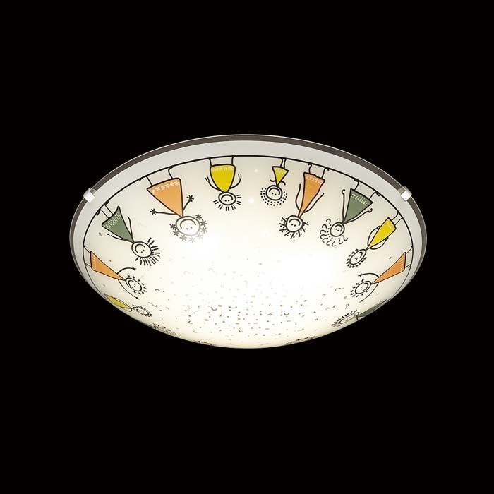 Материалы исполнения База - металл. Плафон - декорированное стекло. Цвет арматуры хром. Плафон в цвете: разноцветный. Особенность: заменяемый LED модуль. Декор орнамент на плафоне, материал декора краска, цвет разноцветный. Светильник 2068/BL серии KIDS c