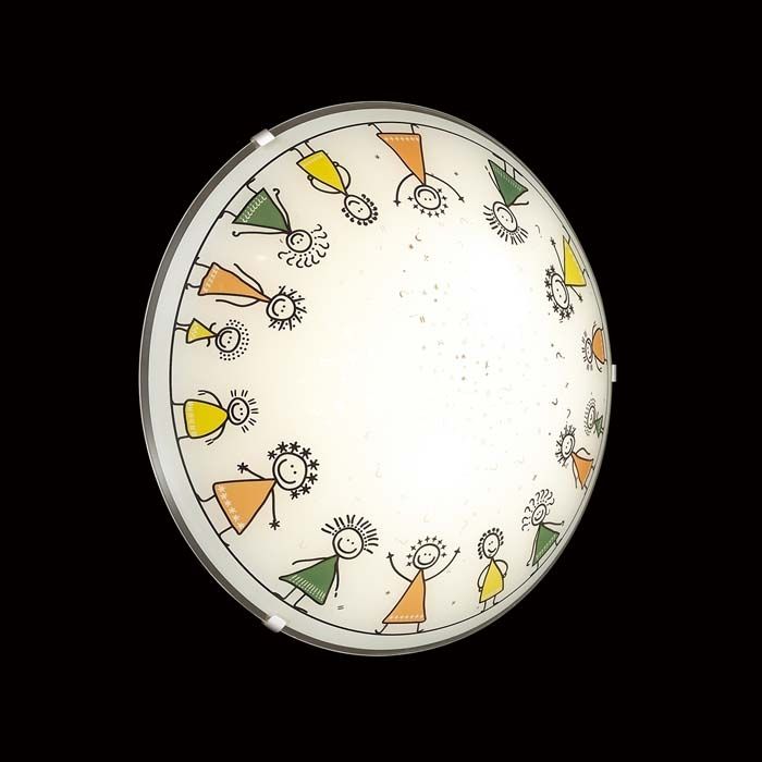 Материалы исполнения База - металл. Плафон - декорированное стекло. Цвет арматуры хром. Плафон в цвете: разноцветный. Особенность: заменяемый LED модуль. Декор орнамент на плафоне, материал декора краска, цвет разноцветный. Светильник 2068/DL серии KIDS c