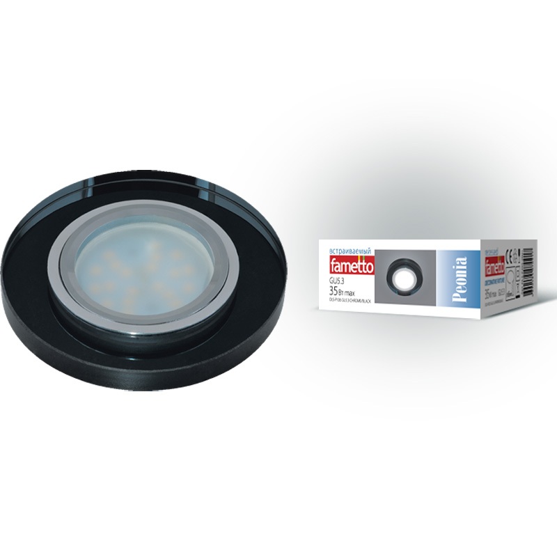 Светильник декоративный встраиваемый ТМ "Fametto" DLS-P106 GU5.3 CHROME/BLACK, серия "Peonia". Без лампы, цоколь GU5.3. Основание металл, цвет хром. Отделка стекло, цвет